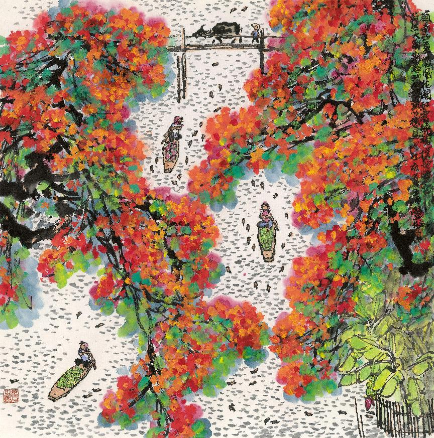 (图:凤凰花开 林丰俗 68cm×68cm 纸本 2007)